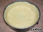 Тесто выложить в разъемную форму, равномерно распределить, сделать бортики. Небольшой кусочек теста оставить для украшения.