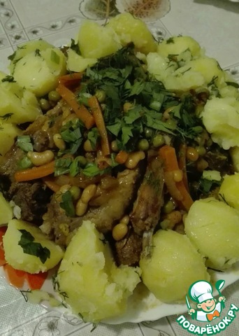 Рецепт «Бараньи ребрышки с фасолью и зеленым горошком»: