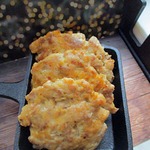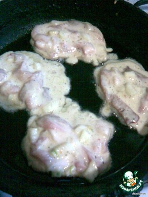 После отстаивания и маринования, ложкой выкладываем на сковороду и жарим с обеих сторон