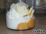 Желтки, творог, молоко и масло смешать до однородной массы блендером. -