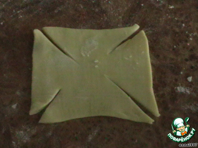 Тоже тесто раскатываем и режем на квадратики. -