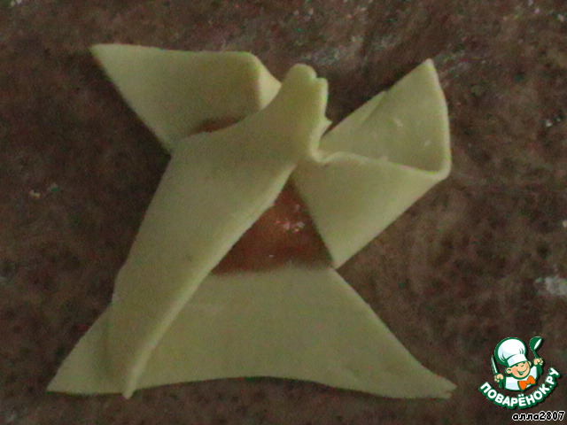 Выложить конвертики на противень, выстланный бумагой для выпечки.