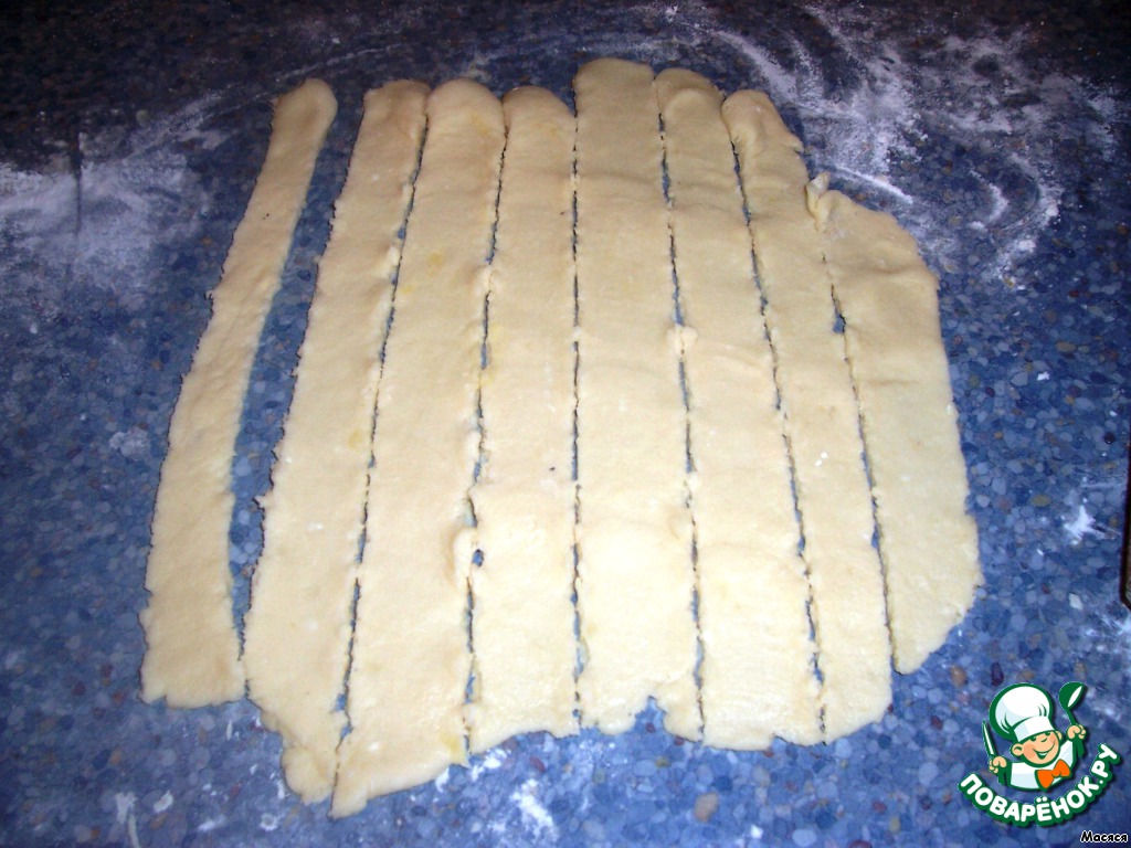 Оставшееся тесто раскатываем и режем на полоски - это будет решетка.