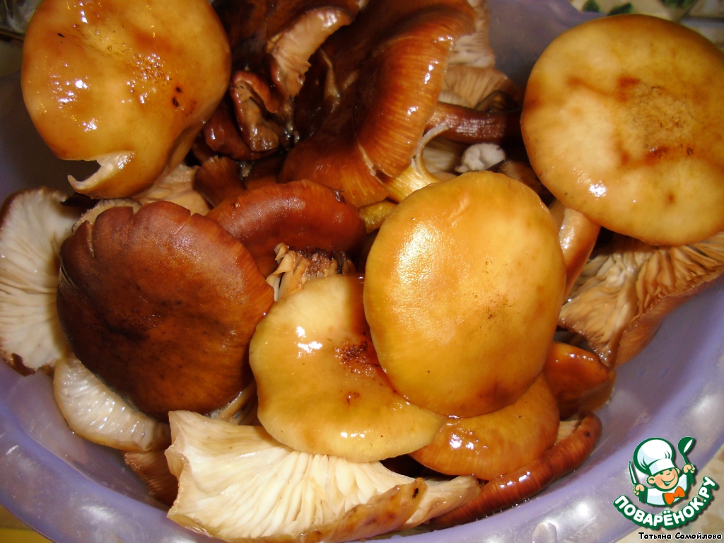 Купили килограмм опят, захотелось просто жареных грибов. А муж еще хотел рулет из лаваша (правда, не с грибами). Но я решила объединить эти два желания в одно и приготовила лаваш с жареными опятами.