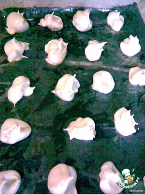 Основа торта - лепешки безе. Специально просмотрела, есть ли такой торт в рецептах - есть. Но... такой, да другой - предлагаю свой вариант.