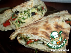 Забежал муж домой и захотелось ему вдруг бутерброда. Я в растерянности, ну, вроде, муж не голодный, в ресторане весь сезон кушает или заранее предупреждает, чтоб приготовила, с чего это вдруг? Пошла я к верному другу - холодильнику и нашла в морозилке 2 -х недельную питу :) Осталось придумать начинку... вот что в итоге получилось...