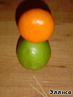 Два кружочка зубочистками прикрепляем в центральной части мандарина,