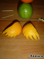 Из кожуры апельсина вырезаем два небольших треугольника,