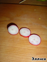 в центре кружков из редиса крепим по ягоде клюквы - глаза готовы.