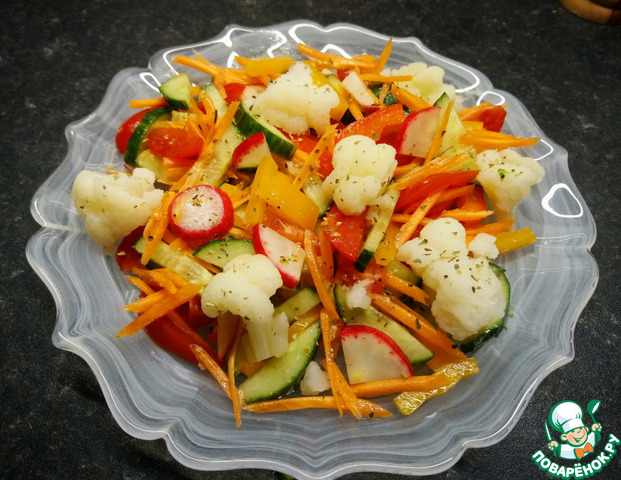 Интересный салат,свежий,хрустящий!Я бы может единственное что бы еще добавила- это лимонный сок)