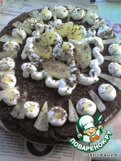 Вверх украсить сливками, ананасом, и тертым шоколадом.