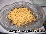 С фасоли слить лишнюю жидкость и добавить её в салат.