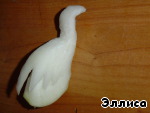 Большую часть мякоти под оперением срезаем под углом, тем самым оформляем тельце журавлика.