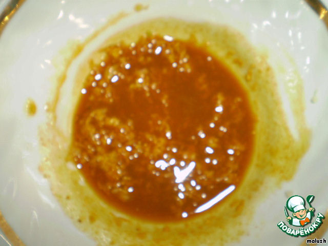 Смешиваем куркуму, чеснок, выдавленный на чесночнице, масло растительное и намазываем рулет этой смесью