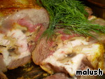 В нашей семье мы с сынишкой любим курицу, а наш папа больше любит свинину. Делать рулет из курицы, будет суховато, а из свинины - жирненько. Выход из положения - курино-свиной рулет. Получилось отлично и все остались сыты и довольны!
