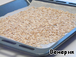 Овсяные хлопья просушить в духовке, нагретой до 150-160 °C, 10-15 минут.