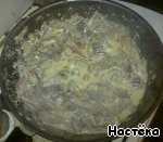 По истечении времени выливаем в казан сметану, тщательно перемешиваем. Тушим 20 мин.