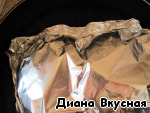Фольгу герметично закрыла и положила в сковороду, наполовину наполненую водой, накрыла крышкой и поставила на огонёк (можно и в духовку но не так сочно будет).
