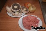 Бывают такие огромные переросшие, раскрывшиеся шампиньоны, вот они нужны. Моем грибы. Чистим и нарезаем мелкими кубиками лук.