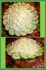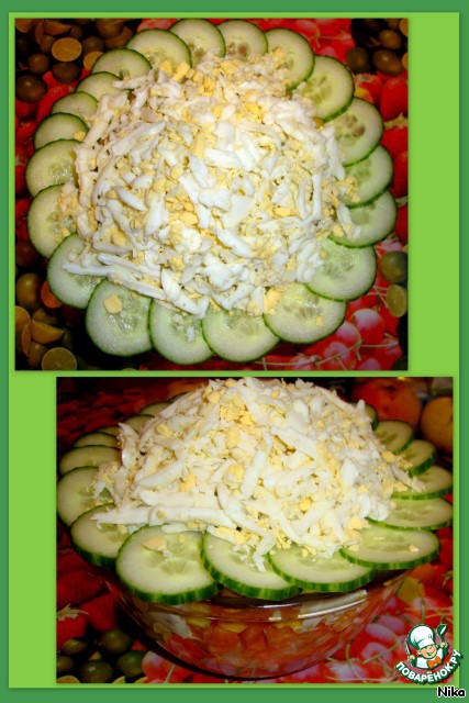 На горошек выложить тертое яйцо (на крупной тёрке).