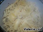 Варим макароны или тесто до готовности, откидываем на дуршлаг. Если Вы приготовили из теста, то нужно промыть в холодной воде.