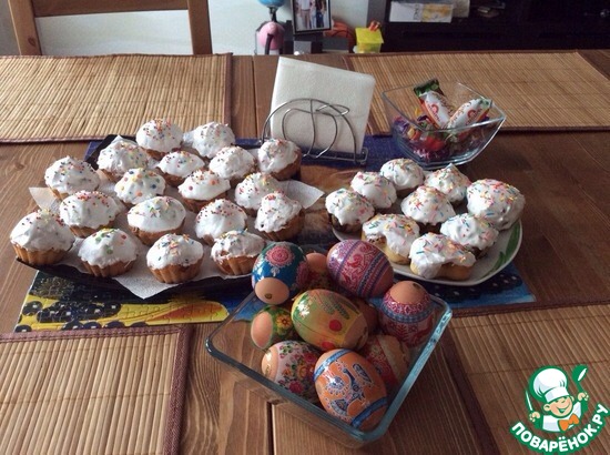 Полностью остывшие кексы вынимаем из форм, посыпаем сахарной пудрой..