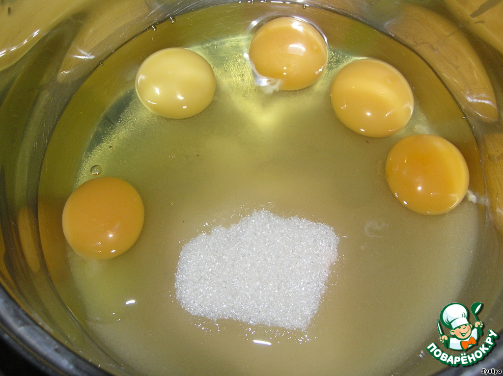 • Рецепт рулета от поваренка nataliahandschuh, за что ей огромное спасибо. Итак яйца+сахар+5 ст. л. кипятка взбить миксером.