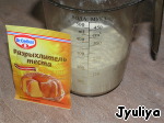 • Муку и разрыхлитель смешать, просеять, добавить в яично-сахарную смесь, продолжая взбивать.