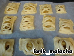 Выложить слойки на противень, печь в разогретой до 220 градусов духовке около 20 минут.