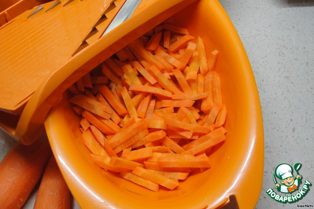 Морковь моем, чистим и нарезаем брусочками или кружочками, кому как больше нравится.