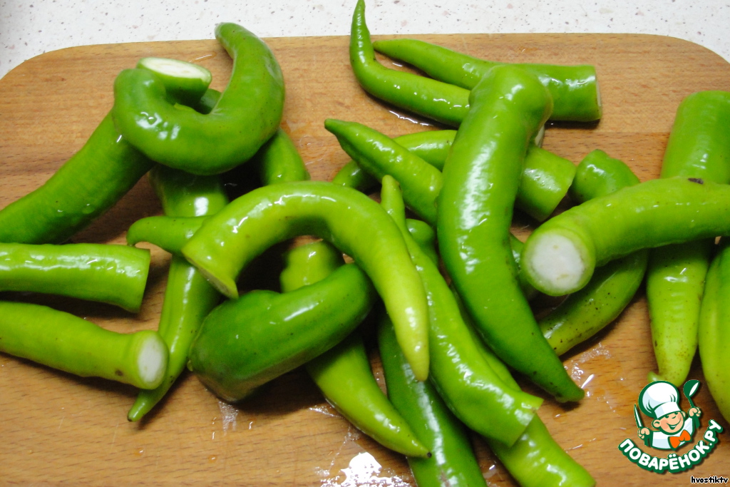 Перец моем, отрезаем хвостики и нарезаем кружочками. Если взять красный и зеленый перец, то это будет ооочень красивая заготовка. У меня к сожалению был только зеленый перец.