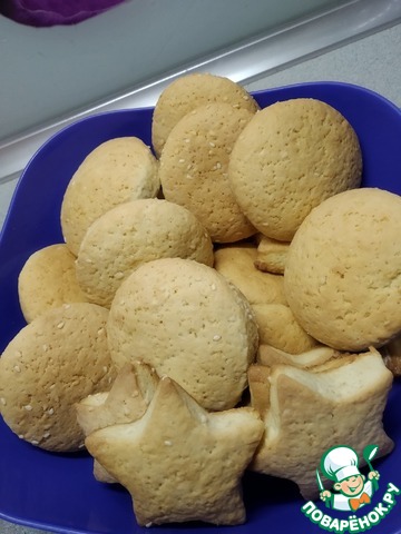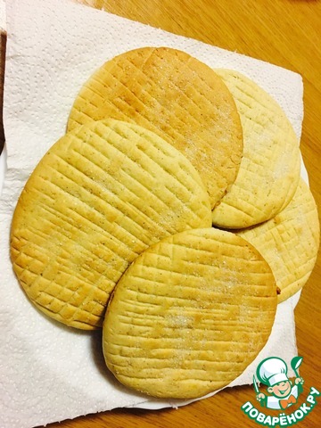 Сформированные коржики переложить на смазанный противень и выпекать в разогретой до 180 градусов духовке около 15 минут.