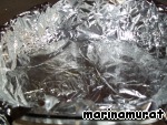 Выстилаем форму фольгой и смазываем немного маслом (у меня оливковое).