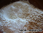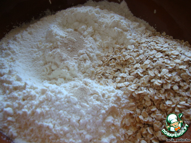 В миске смешать муку, дрожжи и овсяные хлопья.