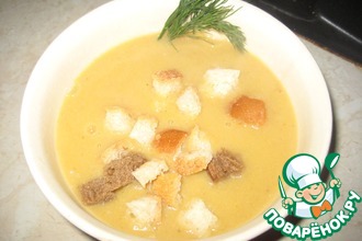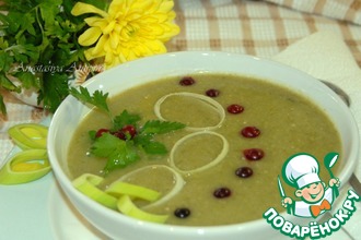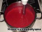 Лавровый лист удалить. Большую часть бульона слить. Овощи с оставшимся бульоном измельчить блендером в однородное пюре.