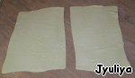 Тесто немного раскатать. Вырезать 4 прямоугольника.