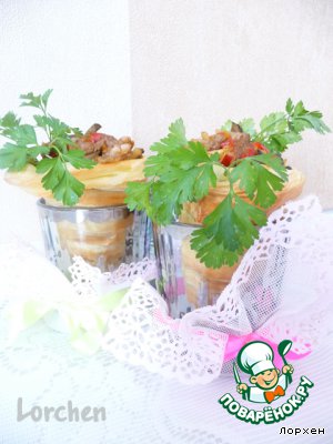 Мы привыкли, такая трубочка должна быть обязательно с кремом, а я подумала: "А почему б не сделать еe с овоще-мясной начинкой?!" И не пожалела! Очень вкусно!!!