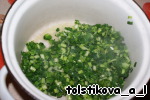 Зеленый лук вымыть, нарезать и обжарить в течение 5 мин.