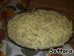 В форму для запекания выкладываем слоями: 1 слой - макароны с сыром,