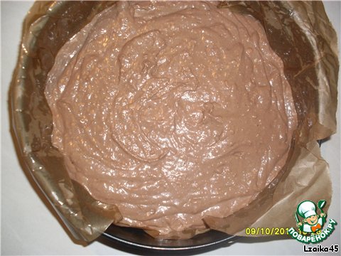 Вылить тесто в форму, застеленную смазанной маслом бумагой для выпечки.