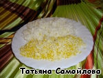 Белок и желток трем на мелкой терке - отдельно.