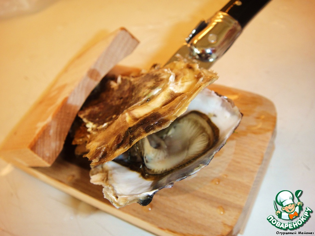 Тем временем займёмся устрицами. Их необходимо аккуратно открыть и разместить на тарелке (со льдом или без — это зависит от того, насколько быстро вы собираетесь их употребить).