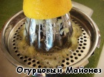 Выжимаем сок из лимона. Осевшую на фильтре мякоть не выбрасываем — она тоже будет использована в соусе.