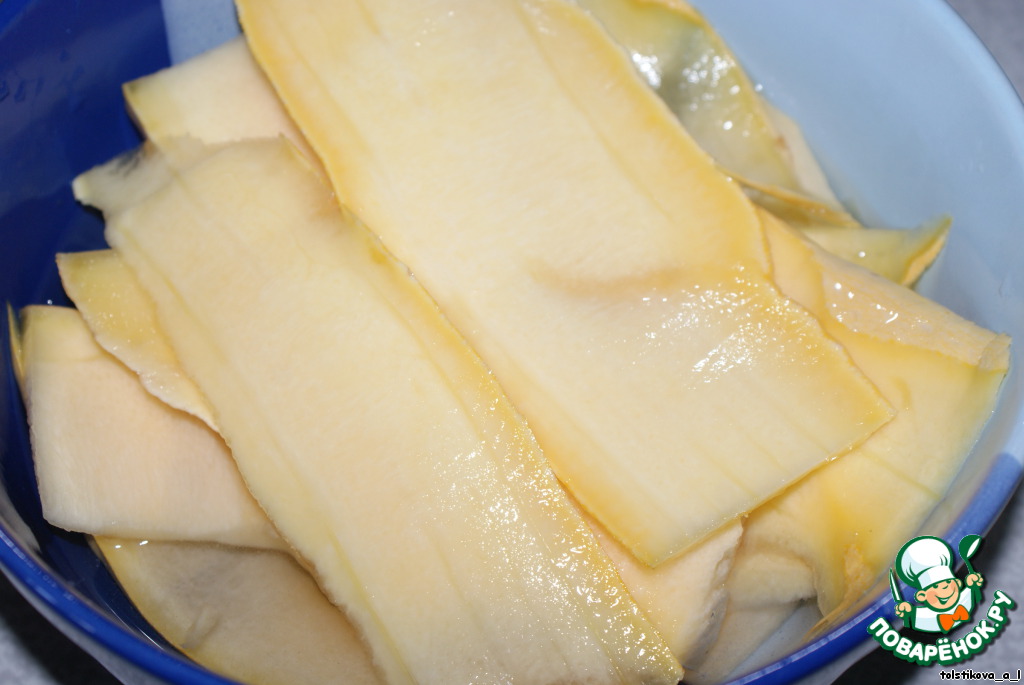 Берем небольшой кабачок, нарезаем полосками