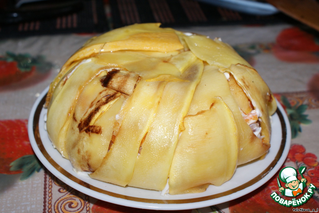 Я далала салат-купол по такому же принципу, но тоЛЬко с баклажанами! Вот их, действительно, и вымачивают, и обсушивают, и обжаривают! С кабачками - всё это тоже допустимо, но - зачем?