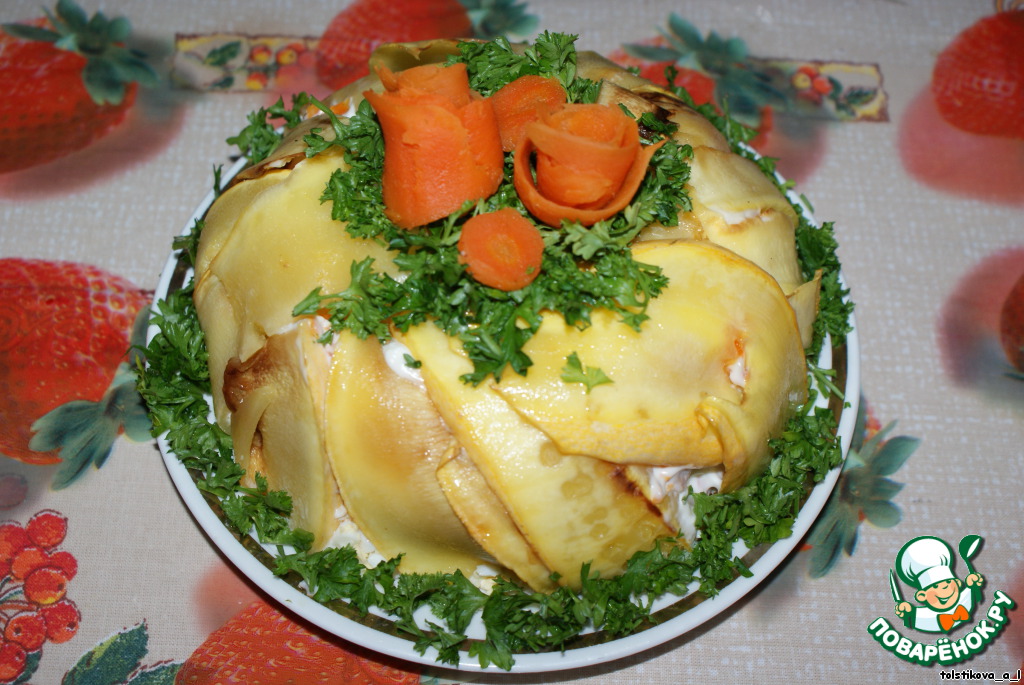 Салат пропитался, переворачиваем его аккуратно на тарелку