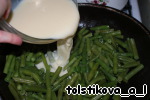 На разогретой сковородке растопить сливочное масло, добавить фасоль, немного обжарить, залить яичной смесью.