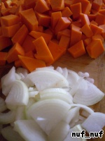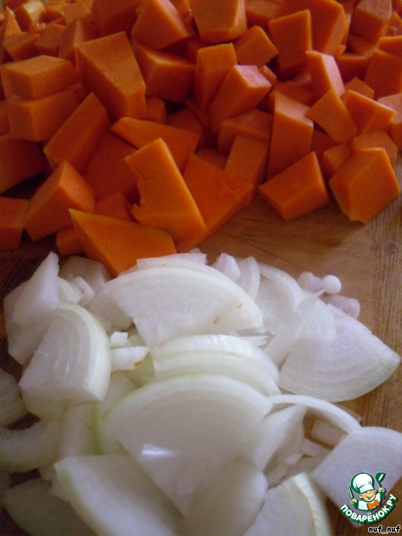 Тыкву и лук чистим и нарезаем не крупно.