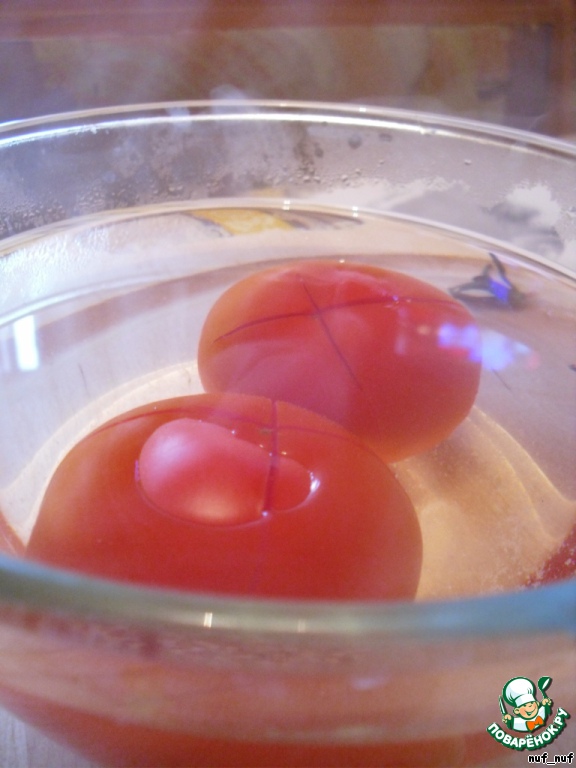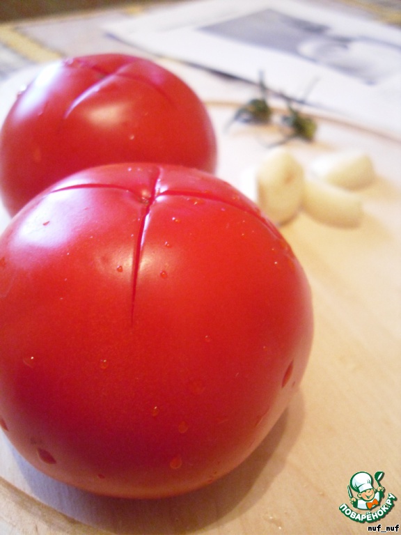 Итак, помидоры тщательно моем, надрезаем крестообразно ... -