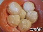 В это время можно подготовить начинку. Если начинка предполагается сладкая, в тесте можно увеличить количество сахара до 2 ст. л. Достаем из холодильника по одному шарику и быстро раскатываем лепешку, делим на 8 частей. Надо постараться делать все быстро, тесто не любит тепла.